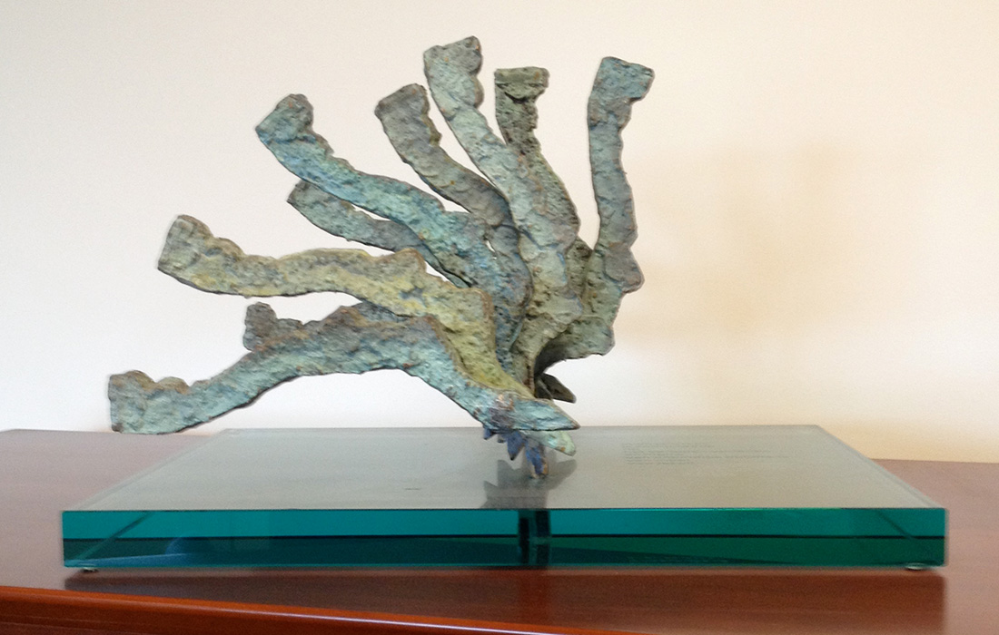 Dit op maat gemaakte kunstwerk, ontworpen als relatiegeschenk, symboliseert samenwerking en het delen van persoonlijkheid. De opdrachtgever wilde een cadeau geven dat verder ging dan materiële waarde, en koos voor een sculptuur dat letterlijk een stukje van zichzelf bevat. Het resultaat is een unieke combinatie van groen gepatineerd brons en glas, waarin het profiel van de opdrachtgever centraal staat.