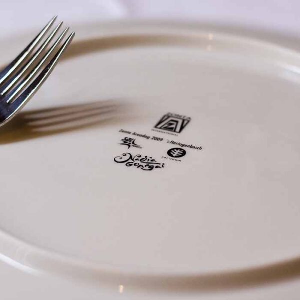 In samenwerking met Zonta Den Bosch, een serviceclub die zich inzet voor vrouwen en kinderen, heeft Nadia Gonegaïin 2009 een bijzonder keramiekproject gerealiseerd. Voor een area dag die Zonta organiseerde, werd een serie van zes verschillende henna-patronen ontworpen, die op de randen van grote, platte borden werden verwerkt. Deze sierlijke patronen zijn gebaseerd op de Indiase traditie van henna-beschilderingen, die vaak tijdens feestelijke gelegenheden op handen en voeten worden aangebracht. Henna staat symbool voor viering, kunstzinnigheid en verbinding, wat het tot een passend thema maakte voor dit project.
